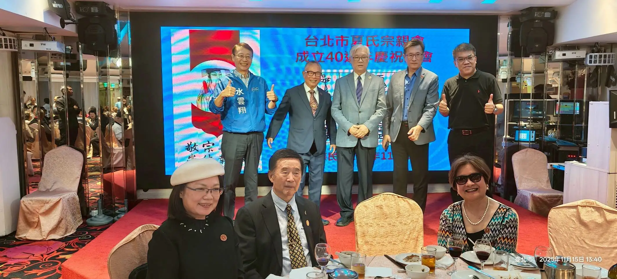 台北市夏氏宗親會11月15日在台北敘香園餐廳舉辦了盛大的四十周年慶典。來自各地的夏氏宗親齊聚一堂,共同慶祝這一重要時刻。慶典現場氣氛熱烈,活動內容豐富,吸引了眾多知名夏氏家族成員和相關社會人士的參與。