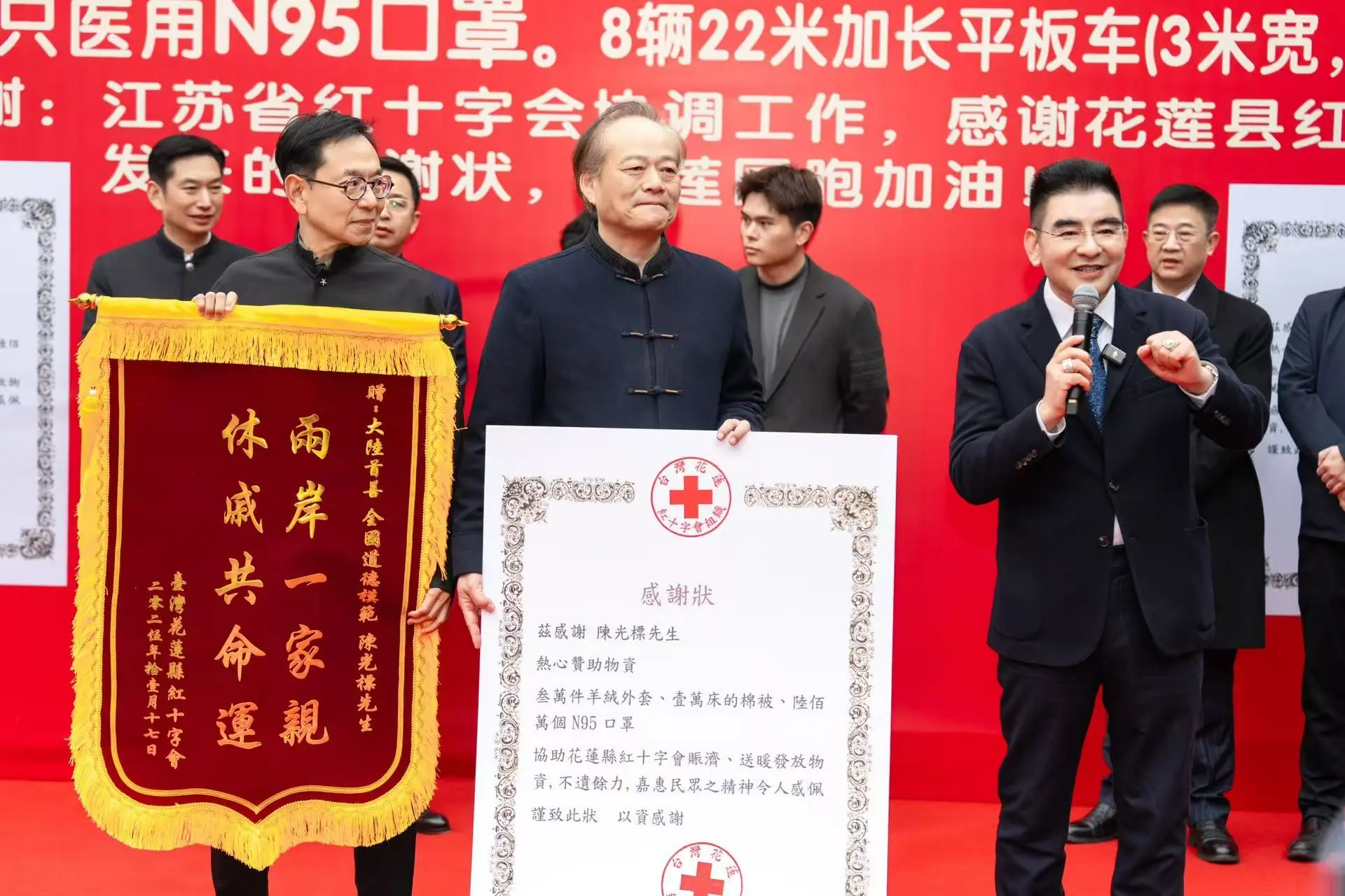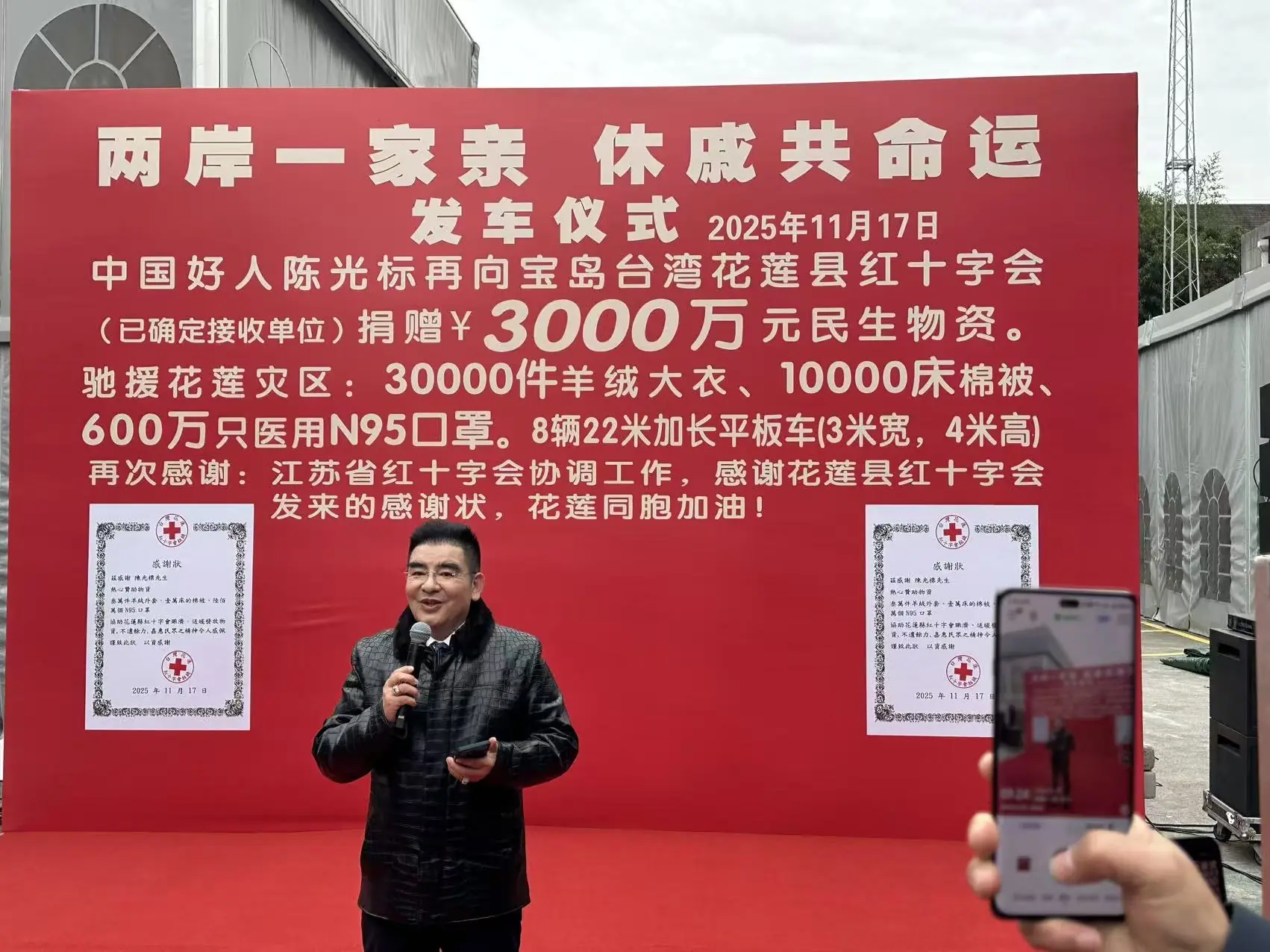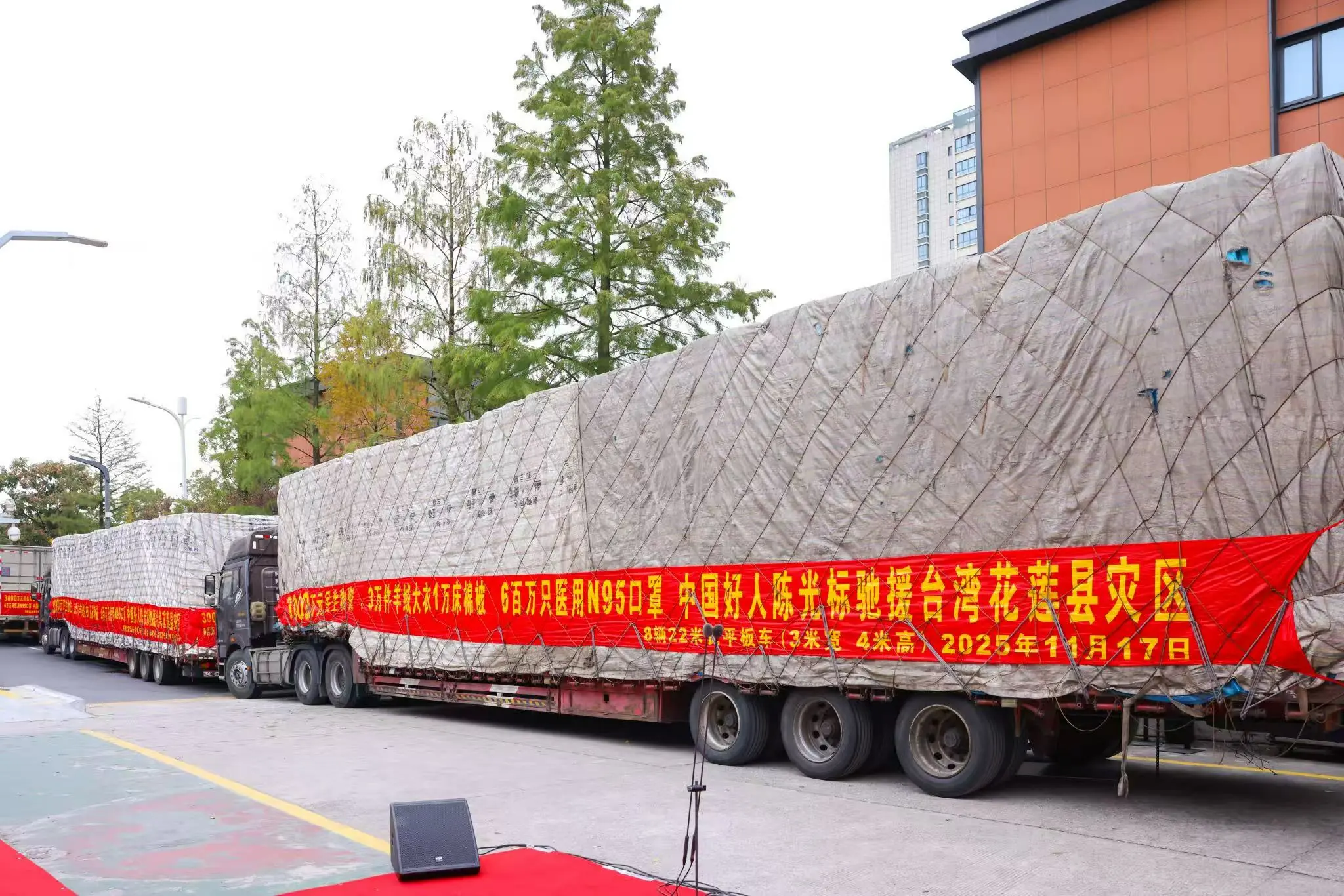跨越海峽的愛心再次感動台灣,中國大陸知名慈善家陳光標先生近日向花蓮地震災區及9月下旬馬太鞍溪堰塞湖溢堤災情捐贈總值3000萬元(人民幣)的民生物資,包括3萬套羊絨大衣、1萬床棉被及600萬只醫用N95口罩,以實際行動展現”兩岸一家親”的深厚情誼。