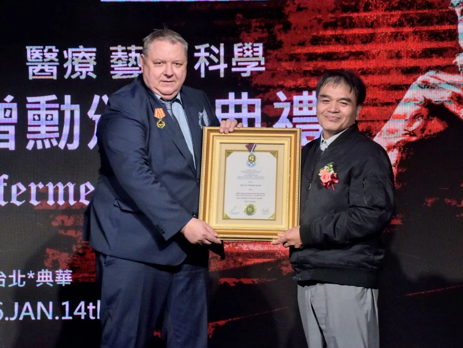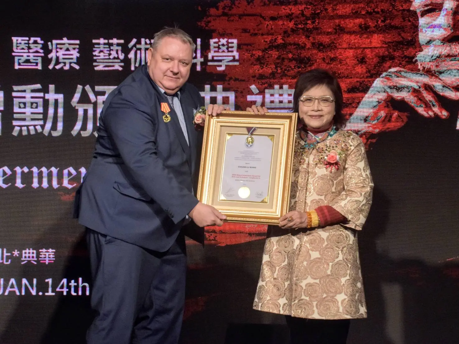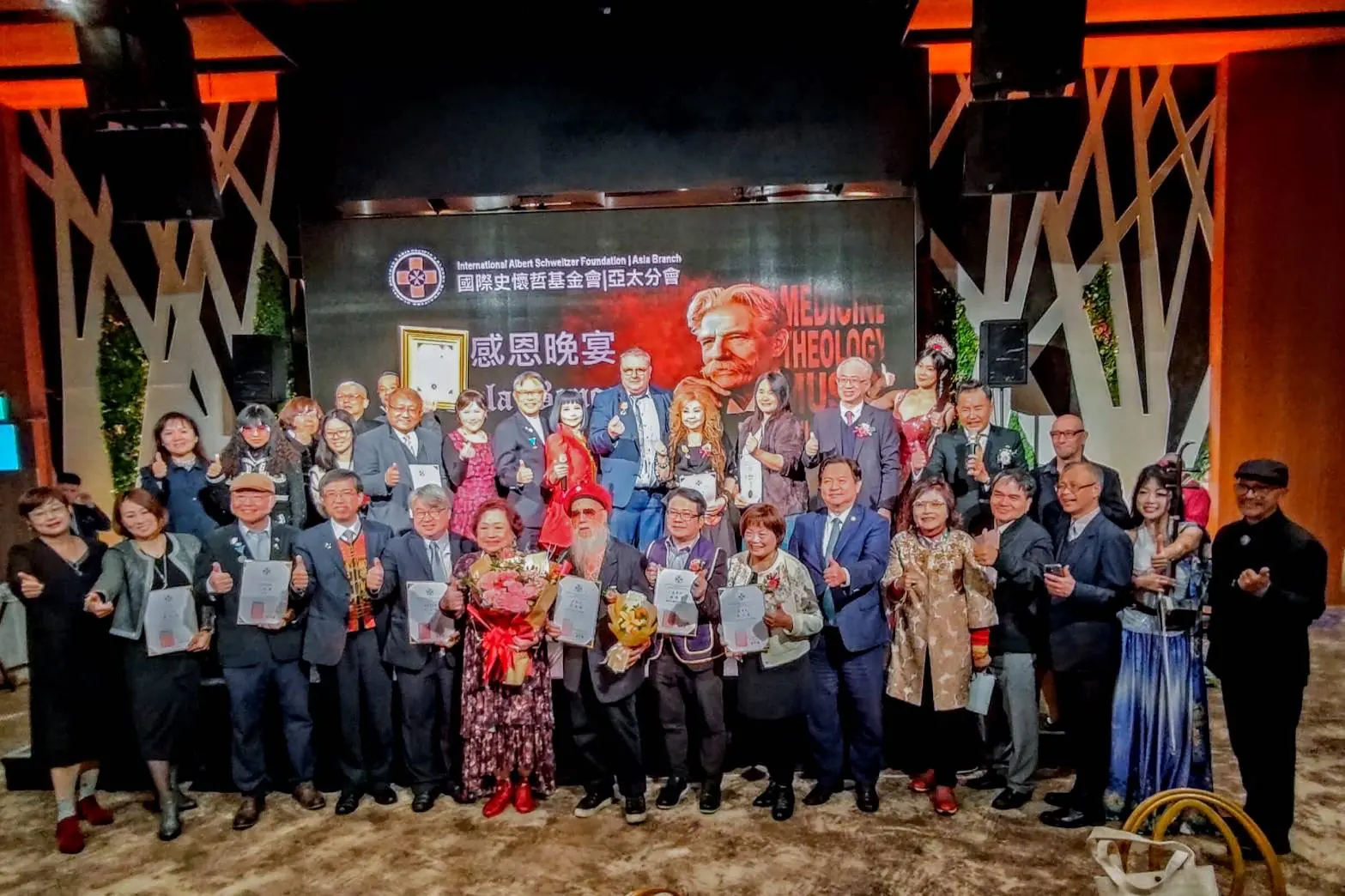 活動現場,頒發傑出得獎者蔡彧博士,展現台灣人道、藝術與永續實力。(圖/國際史懷哲基金會.亞洲分會提供)