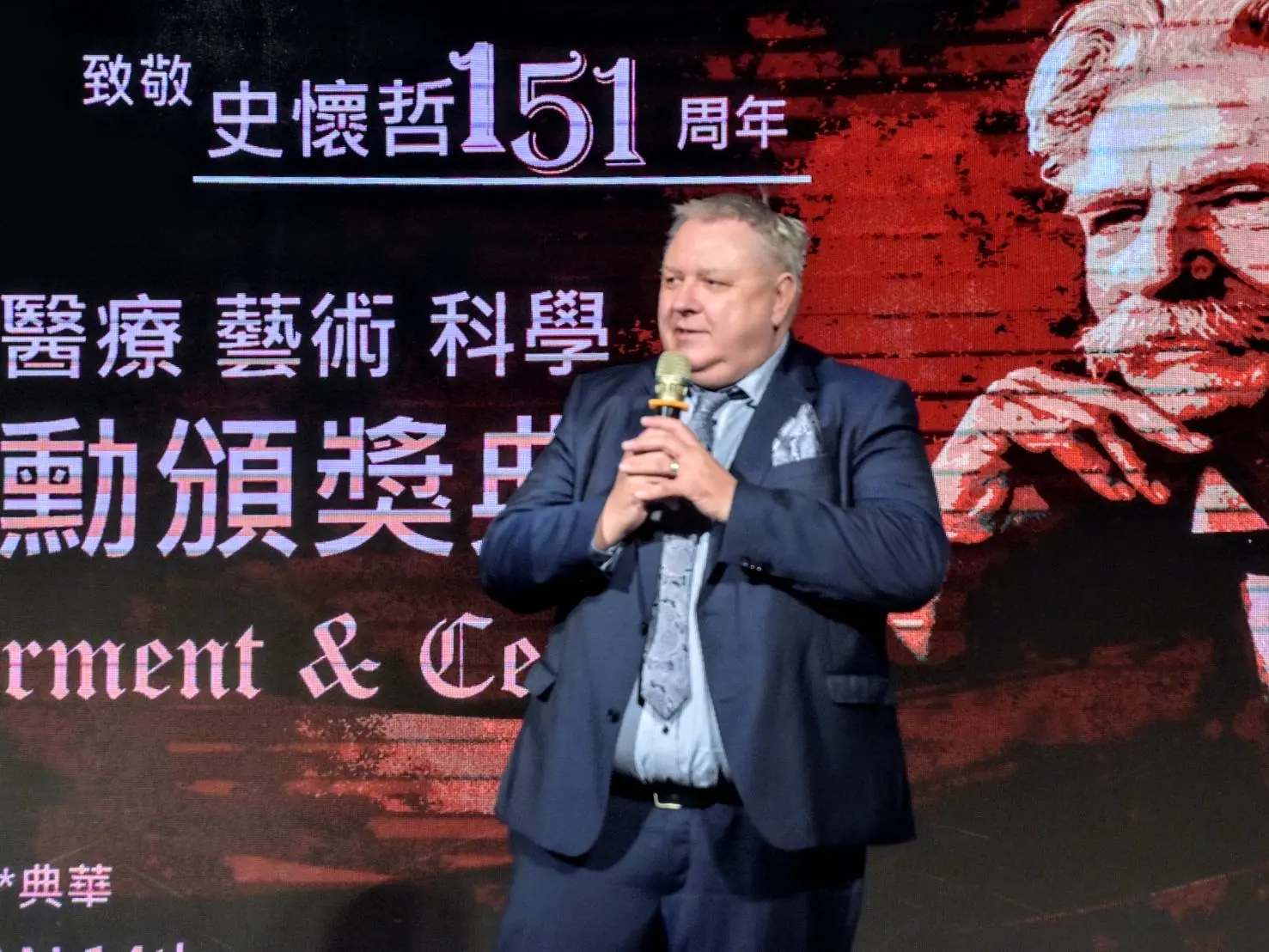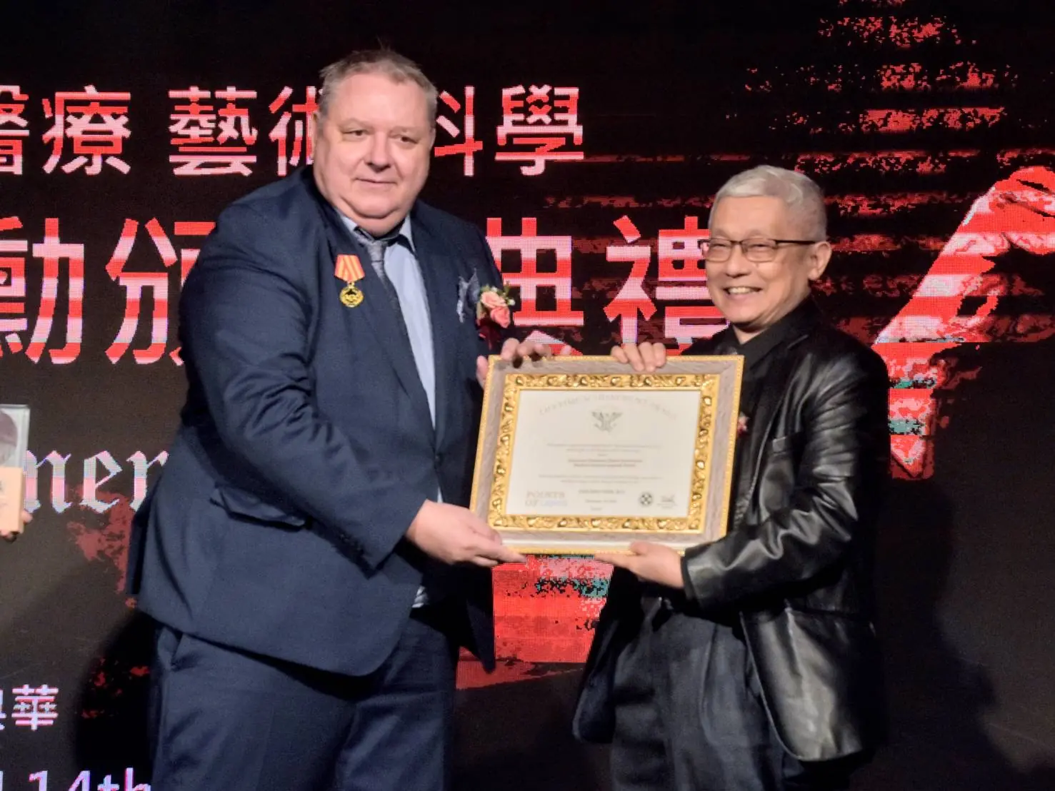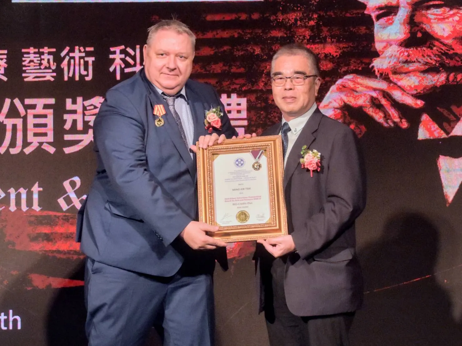 活動現場,頒發傑出得獎者蔡彧博士,展現台灣人道、藝術與永續實力。(圖/國際史懷哲基金會.亞洲分會提供)
